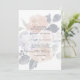Este simples convite de casamento floral é perfeito para o seu elegante casamento de primavera. Ele foi projetado com rosa clássicas, peônias de pinceladas simplistas e hidrangeas azuis empoeiradas. Tudo acompanhado de toques de eucalipto verde e marinho. Com todas essas flores coloridas e claras, você tem certeza de ter a sensação que deseja.