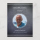 Um design simples de celebração de vida para você personalizar. Um visual de linho cinza escuro falso e um espaço para uma foto cria um convite de cartão postal memorável.