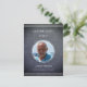 Na frente, você adicionará o nome do ente querido, bem como uma foto. Adicione também a data de nascimento e a data de falecimento na frente. No verso, você personalizará com um endereço de retorno e os detalhes do evento. Use o texto de exemplo para se guiar.