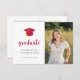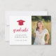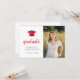 Este convite para a graduação apresenta um tema simples preto-e-branco com um boné vermelho e uma fita de ouro. Adicione uma foto e personalize o texto na frente e atrás para incluir todos os detalhes da sua festa de formatura.