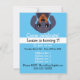 Um convite de aniversário customisable simples que caracteriza um cão de salsicha bonito do Dachshund dos desenhos animados em um fundo azul. Ajuste por favor o texto para serir todas suas necessidades da festa de aniversário!
