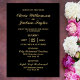 Um elegante convite de casamento preto com texto dourado adequado para casais que estão trocando votos em um local e assistindo a sua recepção em outro lugar.