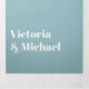 Casamento elegante e simples para a noiva e noiva modernas. Todos em um convite triplo que vem com placas de resposta RSVP, Detalhes e informações e uma foto do casal. Design limpa com fontes tipográficas arrojadas em azul e branco poeirentos. Perfeito para qualquer casamento!