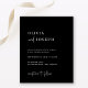 Estes elegantes convites de casamento de orçamento negro são simples e minimalistas, mas muito na moda devido ao guião branco moderno escrito à mão e ao layout limpo.