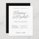 Um convite de casamento preto e branco minimalista com design tipográfico e letra simples de escrita de caligrafia. Personalize facilmente preenchendo seus próprios detalhes. Peça o seu hoje.