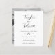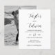 Contemporâneo convite de casamento em preto e branco com um layout simples e minimalista com seus nomes em um roteiro elegante de caligrafia e seus detalhes de casamento em um formato moderno. As costas têm sua foto favorita.