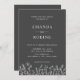 Defina o tom para sua elegante celebração com este Convite Simples de Casamento Preto e Branco Moderno, combinando um layout minimalista limpo com uma arte floral encantadora. Apresentando um texto branco nítido sobre fundo de carvão, este design é ideal para casais que apreciam uma estética moderna, mas quente. A fonte serif subestimada exude a elegância do eterno, enquanto a borda floral desenhada à mão no fundo adiciona um toque brilhante, romântico. É perfeito para casamentos de jardim, cerimônias ao ar livre, ou qualquer evento moderno minimalista. Recursos do design: Esquema de cores preto e branco de alto contraste A tipografia de serifa clássica para um eterno parece Elegante arte de linha floral em terra com o layout Personalizável com nomes, data, hora e local Perfeito Para: Casamentos minimalistas modernos no exterior ou cerimônias de jardim Casamentos elegantes com tema floral