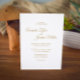 Este simples convite para o casamento da caligrafia dourada traz um luxo elegante, mas moderno, a um casamento minimalista e mais tradicional ou formal. A caligrafia casual permite um sentimento antigo, enquanto o design neutro de classe pode ser combinado com quaisquer aspectos únicos da celebração do casamento.