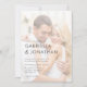 Procurando uma simples design moderna para seu convite para o casamento. Este convite apresenta uma foto favorita com uma camada branca e uma tipografia de cinzas para seus detalhes importantes. O reverso é coordenado em vermelho magenta vibrante