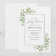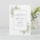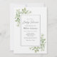 Convite para chá de fraldas com uma fronteira de verde e ramificações. Personalize com suas informações para que a noiva seja.
