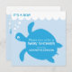 Chá de fraldas Convite para um rapaz com uma simples imagem fofa de uma tartaruga marinha azul sorrindo num mar. Este design é feito como um modelo para sua fácil personalização.