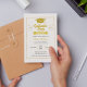 O Simples Convite para Graduação é o epítome da beleza do eterno. O conselho da linha de solteiro lhe dá a elegância e os elementos de graduação feitos à mão do boné de formatura e de rolagem criam a sensação e o reflexo tradicionais. Os recursos de personalização são tão fáceis quanto possível para você fazer todas as alterações no design em breve. Vá em frente e faça as mudanças e faça essa design!