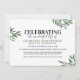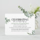 Um convite memorial extremamente simples, mas elegante, com um fundo branco clássico, decoração de folhagem verde em aquarela e um modelo de anúncio de funeral que é fácil de personalizar.