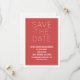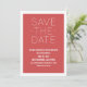Anúncio Simples de Salvar a Data em vermelho e branco com um design de tipografia moderna. Este convite de salvar a data moderno e elegante é fácil de personalizar com os detalhes do seu casamento. Para mais opções de personalização, clique no botão Personalizar.