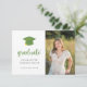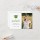 Este convite para a graduação apresenta um tema simples preto-e-branco com um boné verde e uma fita de ouro. Adicione uma foto e personalize o texto na frente e atrás para incluir todos os detalhes da sua festa de formatura.