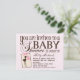 Um convite sofisticado para chás de fraldas com um fundo muito rosa claro e um texto marrom. Armazene design com arco rosa e empacotamento na parte inferior esquerda. Personalize o texto com detalhes da sua ocasião.