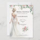 Um convite de chá de noiva floral. Este convite deslumbrante apresenta uma noiva e buquês de rosas cor-de-rosa românticas. A noiva e todos os seus convidados certamente ficarão satisfeitos em receber este cartão de convite bonito e prático.