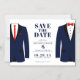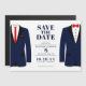 Avise a todos que vocês se estabeleceram em uma data para o seu casamento com este moderno, salve o cartão de data com dois trajes de marinho. Personalize adicionando seus nomes, data e local do casamento.