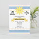 Um doce convite de aniversário azul e amarelo