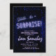A combinação clássica azul e preta para um convite de festa surpresa com opção de rsvp com código QR. muito simples, mas lindo e fácil de personalizar.