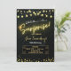 Convite surpresa preto e dourado com QRcode orçame