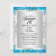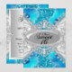 Convite de Aniversário Sweet 16 Azul e Prata. Design elegante com diamante e glitter. Por favor, note: Todas as imagens planas, elas não têm joias ou glitter reais!
