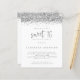 Convite de Sweet 16 com Brilho Prateado por um Preço Acessível. Uma alternativa MENORES de 4,5” x 5,6” por um preço acessível. Disponível em PAPEL CARTÃO DE 110 lb SEMI BRILHANTE, que é a opção padrão (recomendada para convites), OU PAPEL MAIS FINO DE 80 lb COM ACABAMENTO EM SEDA (ideal para inclusões). Um toque de brilho com uma borda de brilho falso nos lados superiores, e "sweet 16" está em uma fonte trendy. Personalize facilmente o restante do texto com seus próprios detalhes. Você também pode alterar as cores do texto e do fundo através da opção "personalizar mais" se desejar.