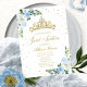 Convite Sweet 16 Tiara Dourada Floral Azul Pó