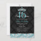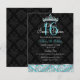Convite Teal Black Damask & Tiara Sweet 16