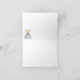 O adorável bebê ursinho de pelúcia está sentado numa tenda com flores silvestres por toda a parte. Há também um pequeno par de tênis azuis. Na dentro está um pequeno ursinho de pelúcia sentado com um presente embrulhado. Isto coordena-se com um conjunto completo de convites para duches de bebês e material de festa.