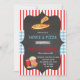 Convite tema de filme de pizza xadrez vermelha e azul