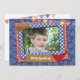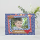 Um estilo do álbum de recortes, um convite temático ocidental da foto com bandana vermelho, e um chapéu de vaqueiro com coordenação de paisley e de padrões checkered da xadrez em vermelho e em azul. As bandeiras de coordenação da estamenha fazem para um convite de festas festivo. Fácil personalizar com seus detalhes do partido e foto favorita.