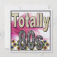 Convite de cerâmica de pérolas quadradas com "Total 80" soletrado em malha dourada e em caracteres de rendas pretas. Adicione uma bonito pena rosa e alguns baubles da década de 80 e você tem um convite perfeito para sua festa dos anos 80. As costas têm uma borda preta adornada com uma pena rosa. Texto da opção. Veja a coleção inteira de convites da Tubular 80s nos CONVITES | Seção Convites e Cartões.