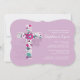 O convite contemporâneo do baptismo que caracteriza um roxo, um azul de turquesa & uma cruz floral cor-de-rosa das flores ajustou-se em um fundo claro do roxo da lavanda. Lance o convite sobre para um fundo floral de harmonização para um toque especial extra. Nosso convite moderno do baptismo ou o convite do batismo para um baptismo do bebé estão igualmente disponível em nossa loja para um bebé.
