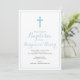 Um design simples, clássico para uma ocasião a mais especial. Este convite do baptismo caracteriza uma simples, luz - cruz azul emparelhada com a tipografia elegante do roteiro.
