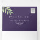 Escrito elegante e moderno da caligrafia, convite de casamento roxo de aquarela com simples corda prateada e foto personalizada do casal.