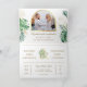 Convite Tropical Gold Monstera Palm Photo QR Code Wedding