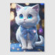 Um gato branco giro com olhos azuis e boa-noite