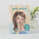 Volte no tempo e comemore um marco com este encantador convite da "Rapariga da Flor Retro" Doce 16! Apresentando uma ilustração legal e pintada à mão de uma garota branca em tons adoráveis de azul, esta design capta uma alegre vibração retrorreflectora que é na moda e divertida. É a maneira perfeita de convidar amigos e família para uma memorável celebração de 16 anos com um toque de talento de vintage. A parte traseira da placa é totalmente personalizável com todos os detalhes de sua parte: onde, quando, informações de RSVP e muito mais!