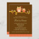 Convite bonito e doce do chá de fraldas. Características mamã e coruja do bebê na combinação de cor marrom, alaranjada e amarela. Etiqueta de endereço, etiqueta do favor e selo postal de harmonização disponíveis nesta loja! Este design está disponível na outra combinação de cor.