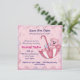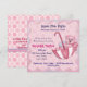 Convite de chá de bebê menina com adorável ursinho rosa andando de guarda-chuva, pontos grandes e outros toques especiais. Personalize com suas informações.