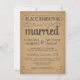 Coma, beba, e é casado -- Convites rústicos do casamento do país do estilo do vintage -- Swirly, os rolos encaracolado e a tipografia da velho-forma na antiguidade original envelheceram o fundo do pergaminho do ecru. Adicione seus nomes e informação wedding neste modelo fácil de usar. Elegante mas divertimento e lunático, a caligrafia do roteiro do estilo do quadro pode ser alterada para seu tema retro formal ou semi-formal do casamento. O estilo moderno ocasional é perfeito para casamentos contemporâneos na moda com um toque do divertimento de encanto sofisticado para os noivos tradicionais. Contacte-nos por favor para a ajuda com personalização se você precisa a sala adicional para seus detalhes do casamento. Outros tamanhos e estilos do quadro disponíveis.