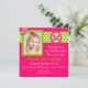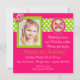 Convide seus convidados a sua festa de aniversário das meninas em uma maneira do divertimento com este convite cor-de-rosa e verde do aniversário da foto.