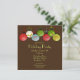 Enfie sua festa natalícia fora do direito com nosso convite verde da festa natalícia do quadrado dos enfeites de natal com um fundo marrom na moda. Certifique-se que todos seus amigos e membros da família estão lá comemorar com você esta época natalícia! O Natal é uma época do ano favorita para a maioria, seja certo ser cercado pelas amadas ao fazer as memórias que durarão uma vida. arte de Ann Digital do ©Tracy