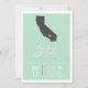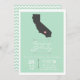 Uma hortelã chique verde e convite branco do casamento, caracterizando uma silhueta cinzenta de Califórnia com um coração. A parte traseira do convite tem um design verde e branco simples da hortelã da viga do impressão.