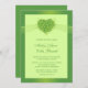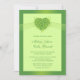Este o convite do casamento do dia de 5x7 St Patrick à moda tem uma beira do verde esmeralda com um meio verde macio. Na parte superior, há um coração verde que seja compo de muitos trevos de 4 folhas com os redemoinhos em torno das bordas. Há um design moderno da listra que vem do coração às bordas laterais. No meio, você pode facilmente personalizar a informação da cerimónia de casamento. Este seria um convite bonito para um casamento em torno do dia do rissol do santo, ou para um casamento do primavera ou do verão.