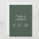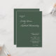 Um convite simples e elegante em Highland Green. Seus nomes aparecem em um roteiro vivo e os detalhes aparecem em uma fonte serif restrita e sofisticada. A parte traseira apresenta seus nomes em um plano de cores de cheio. Para amantes do outono em todos os lugares.