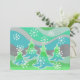 Uma paisagem de inverno moderna e estilizada com pinheiros foscos e flocos de neve espumantes. Convite com um design verde, azul, prata, cinza e branco personalizável para você personalizar com seu próprio texto, imagens e ideias. O texto pode ser facilmente alterado usando o modelo fornecido ou clique no botão 'Personalizar o texto' para fazer outras alterações. Um lápis colorido digitalmente melhorado por Jess Perry.