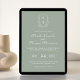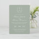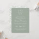 Sage Green Monogramas Crest Wedding Convite: crista monograma de arte de linha inspirada em vinheta com elegante sábio e tipografia verde. Possui um padrão floral de chinoiserie no reverso para sofisticação do eterno.
