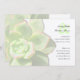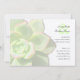 Este convite elegante summery do casamento do estilo do moderno-vintage caracteriza uma foto semi-transparente de um succulent antiquado (succulent do aeonium). As "galinhas e os pintinhos às vezes chamados," o nome oficial são Sempervivum, que os meios "vivem para sempre"--um sentimento bonito para um casamento. Eu sou dito que os floristas referem este como Echeveria. Mostrado no papel de feltro--você pode mudar ao linho se você prefere o branco a um tom do marfim.